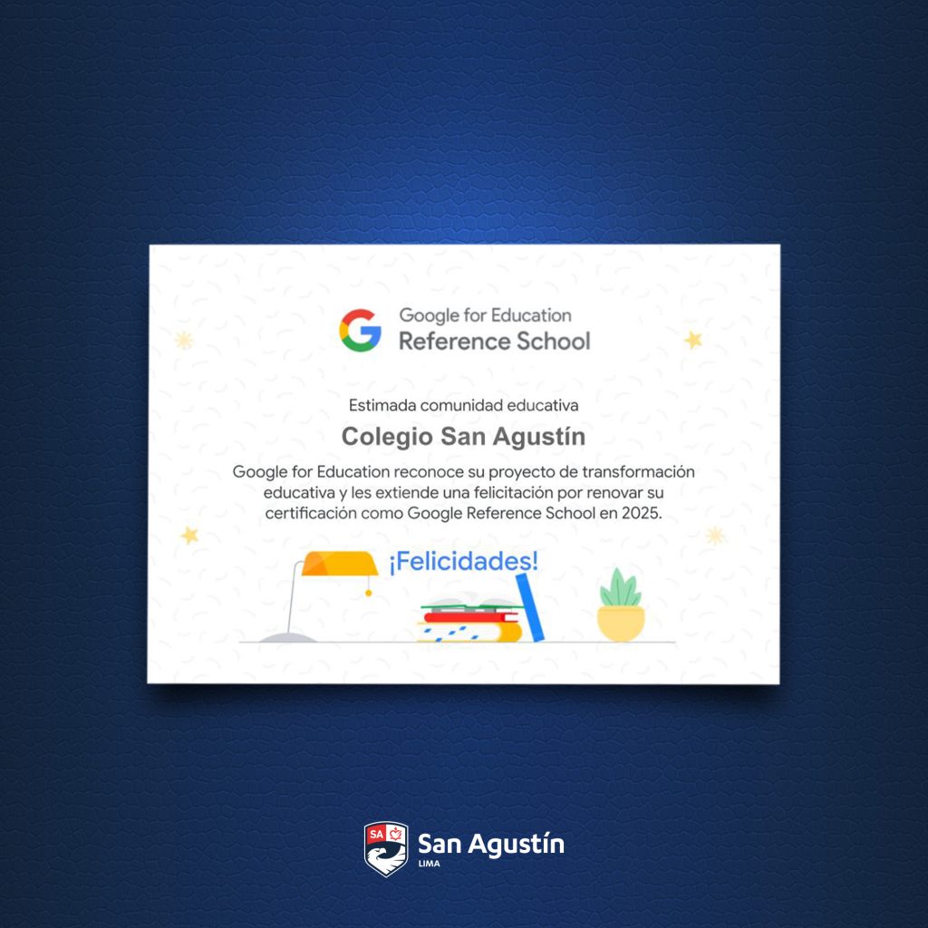 Nos complace anunciar que hemos renovado oficialmente nuestra distinción como Escuela de Referencia Google para el año 2025. Este reconocimiento reafirma nuestro compromiso constante con la innovación en la educación y con la integración significativa de las herramientas de Google for Education en el aula. Es realmente motivador ver cómo nuestra institución continúa marcando la diferencia, impulsando tanto a estudiantes como a docentes hacia nuevas formas de aprendizaje y colaboración.